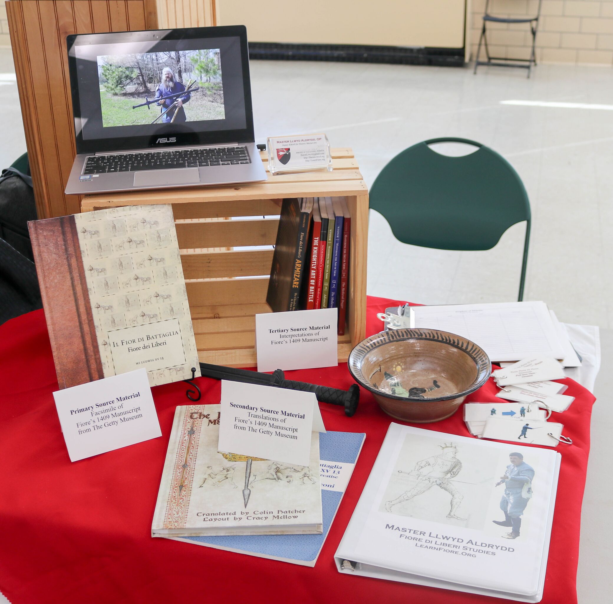 Display of Historic Martial Arts research at Atlantian Kingdom Arts & Sciences event in March 2018.