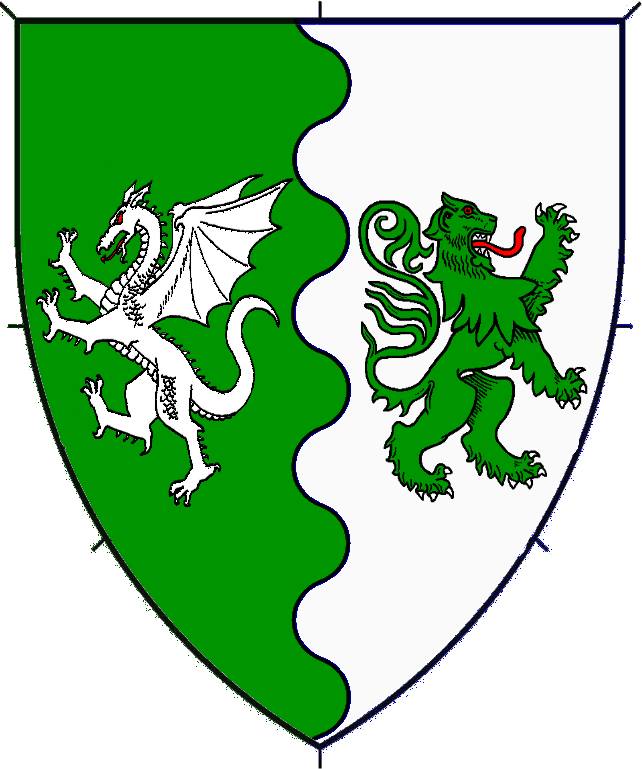 | current | 21:27, 28 August 2019 | 642 × 769 (59 KB) | Gabrell (talk | contribs) | Per pale wavy vert and argent, a dragon and a lion addorsed counterchanged. |