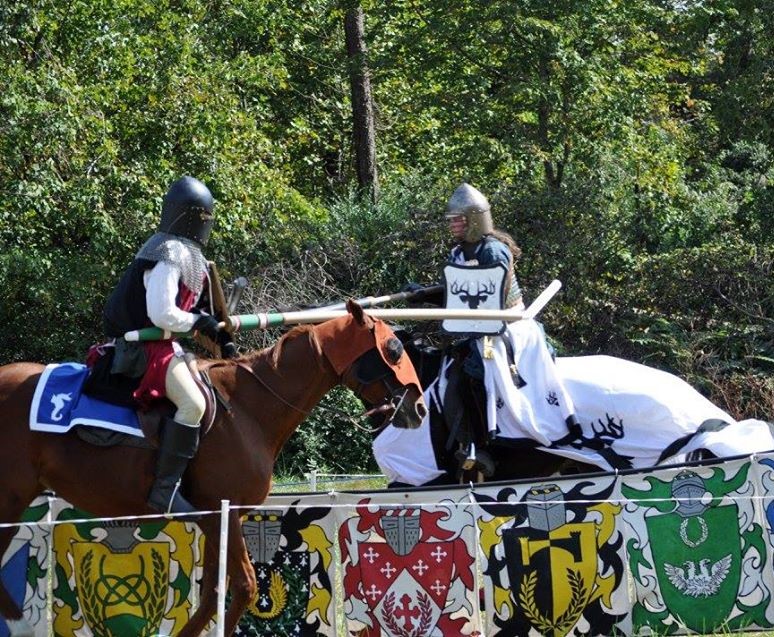 William de Hirst jousting against Lady Zarr de la Vega on Macgovick. Photo credit Jacqueline Grant