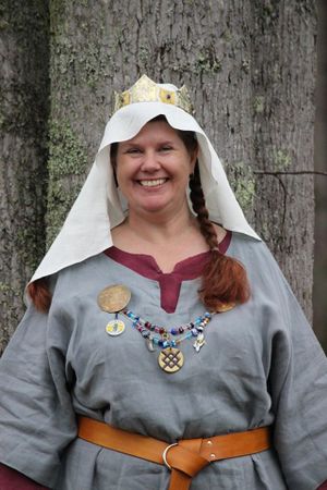 Over the course of many years, Olwen has held many positions in both Ealdormere and Atlantia. At various times, she has been a Chronicler, Principality Chirurgeon, Dean of the Page's Academy, a Herald at Large, and the Minister of Arts and Sciences, as well as being a deputy for the offices of Seneschal and Exchequer. Additionally, she has autocratted a few events (showing a penchant for Unevent) and been the head cook for several events. She was also the head retainer for Their Excellencies of Raven's Cove, Baron Lochlainn and Baroness Edan.